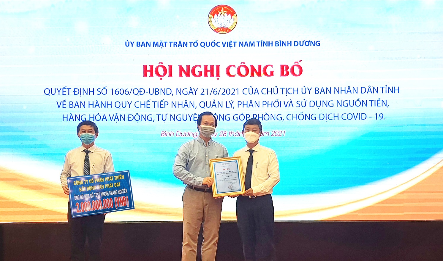 Phát Đạt tài trợ 2 tỷ đồng cùng tỉnh Bình Dương phòng chống dịch Covid-19