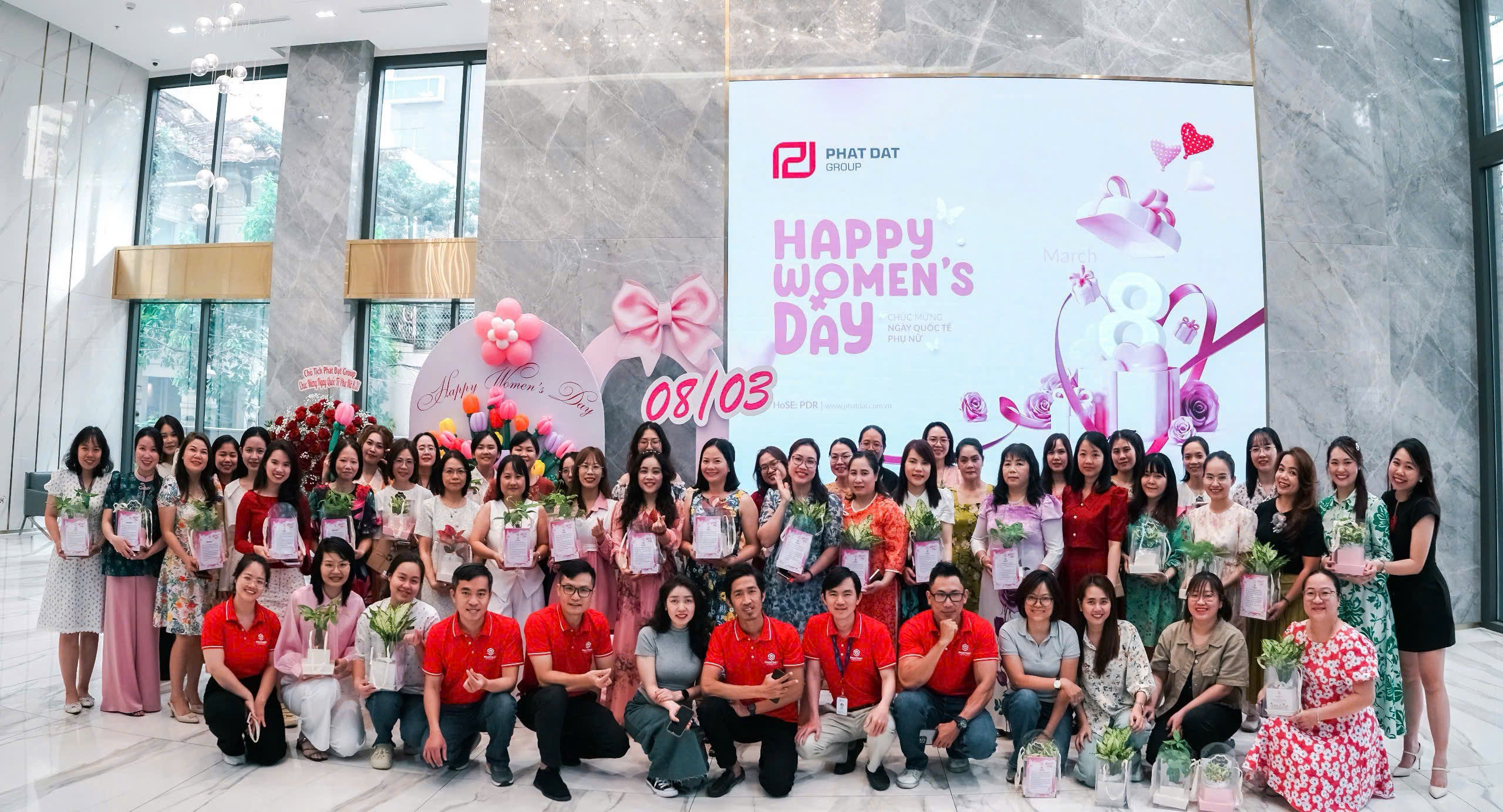 Rộn ràng không khí ngày Quốc tế Phụ nữ 8/3 tại sảnh tòa nhà văn phòng Phát...